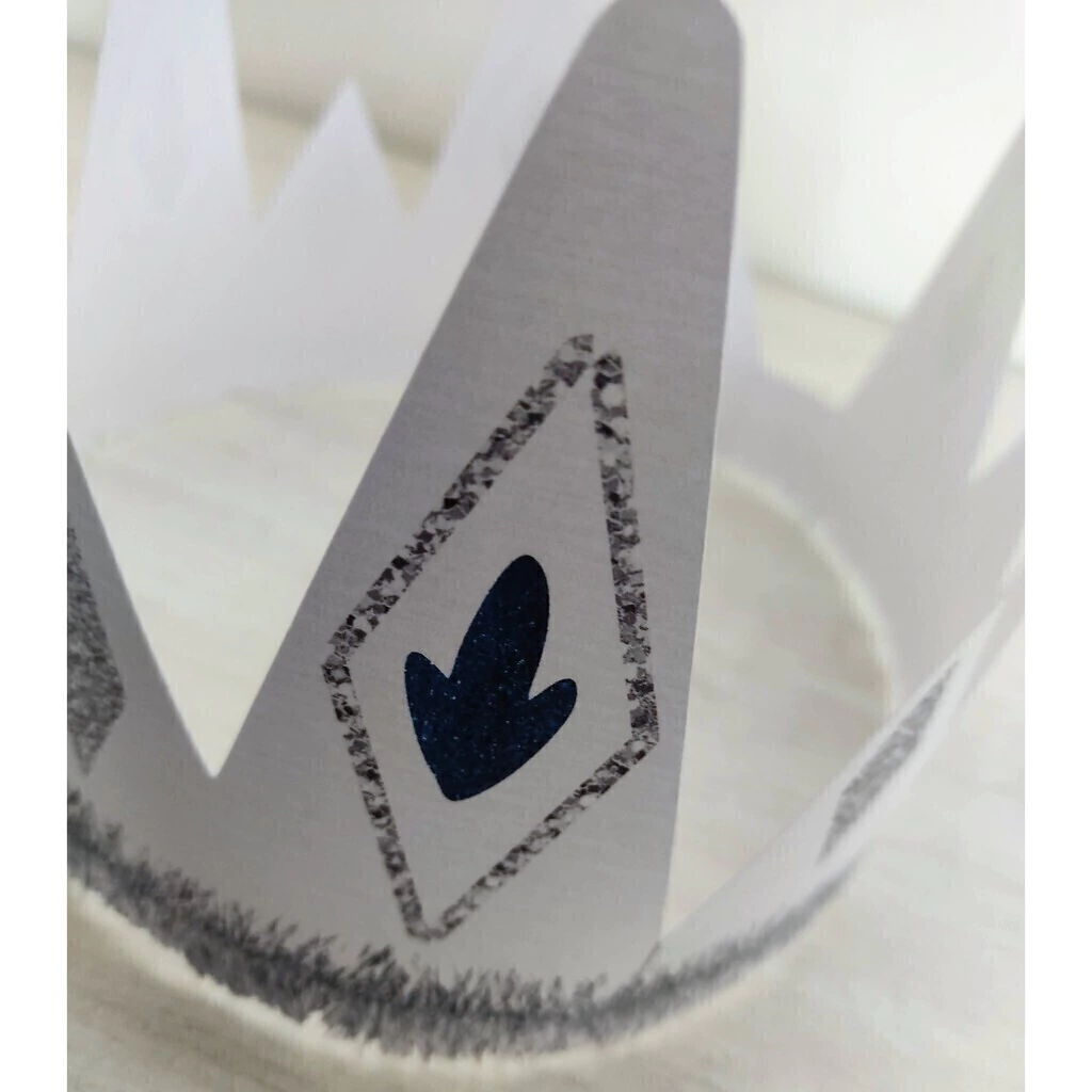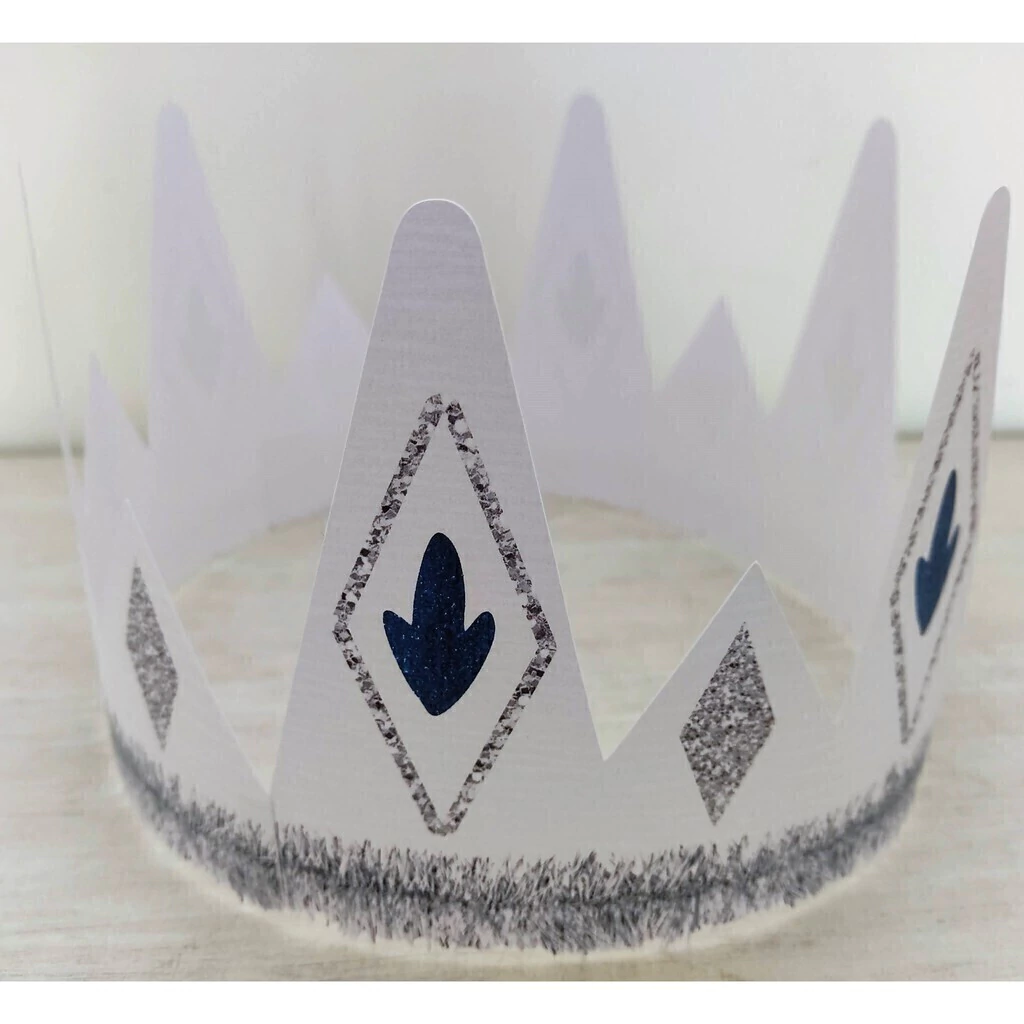 Coroa composta 100% de Papel Fotográfico Fosco de 230g, ela é dividida em 3 parte que quando se unem formam a coroa.