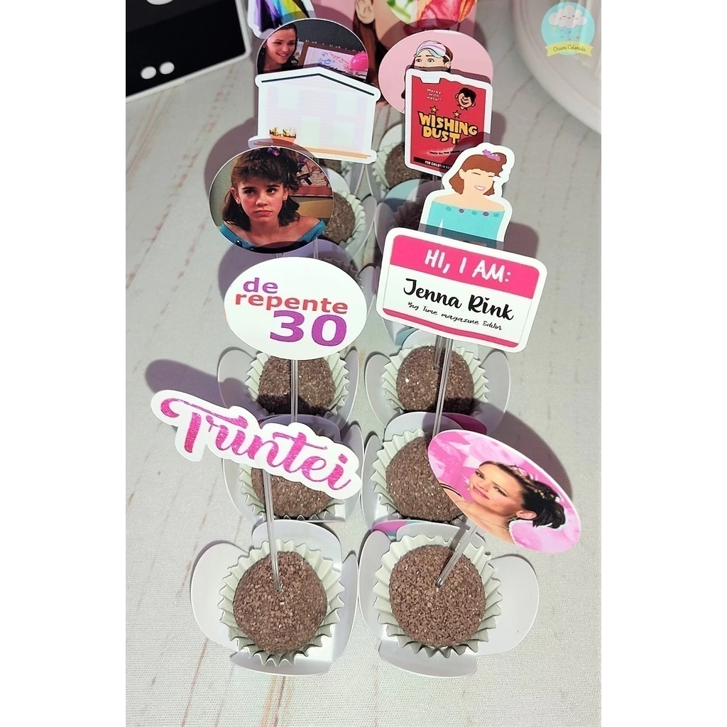 Toppers de docinhos são utilizados principalmente como elementos decorativos para dar um toque especial e atraente aos doces. Use em brigadeiros, cupcakes, entre diversos tipos de docinhos!